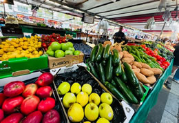 Photo 3 : Un marche matinal a Paris. La culture vegetarienne est favorisee par l'abondance de produits vegetaux disponibles et la presence de marches.